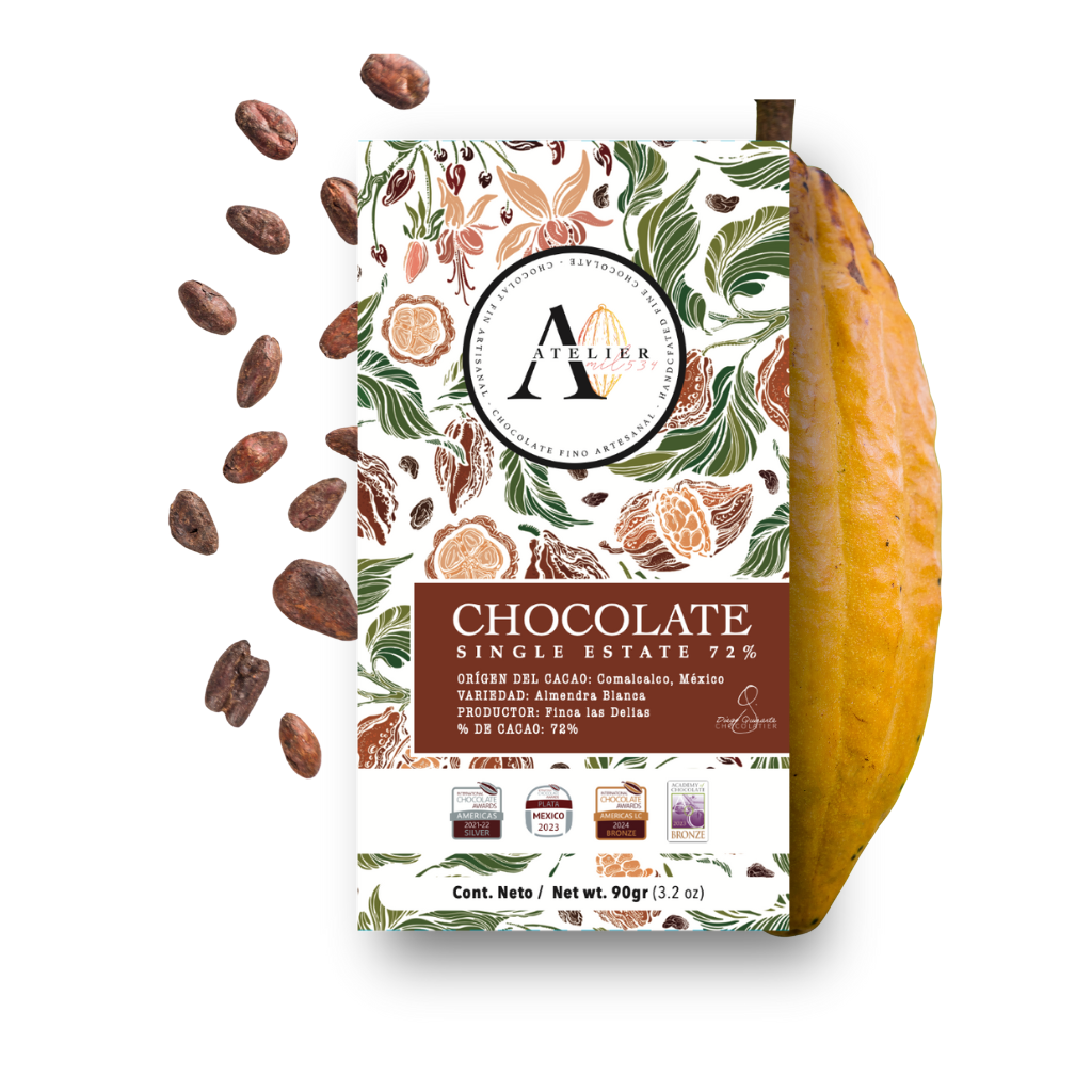 Elaborada con cacao Almendra Blanca de una sola finca en Comalcalco, Tabasco, y una única cosecha por lote. Cacao criollo de genética ancestral, ligeramente tostado para preservar sus notas naturales. Aromas de flores blancas, miel y frutos secos; acidez brillante y textura aterciopelada.