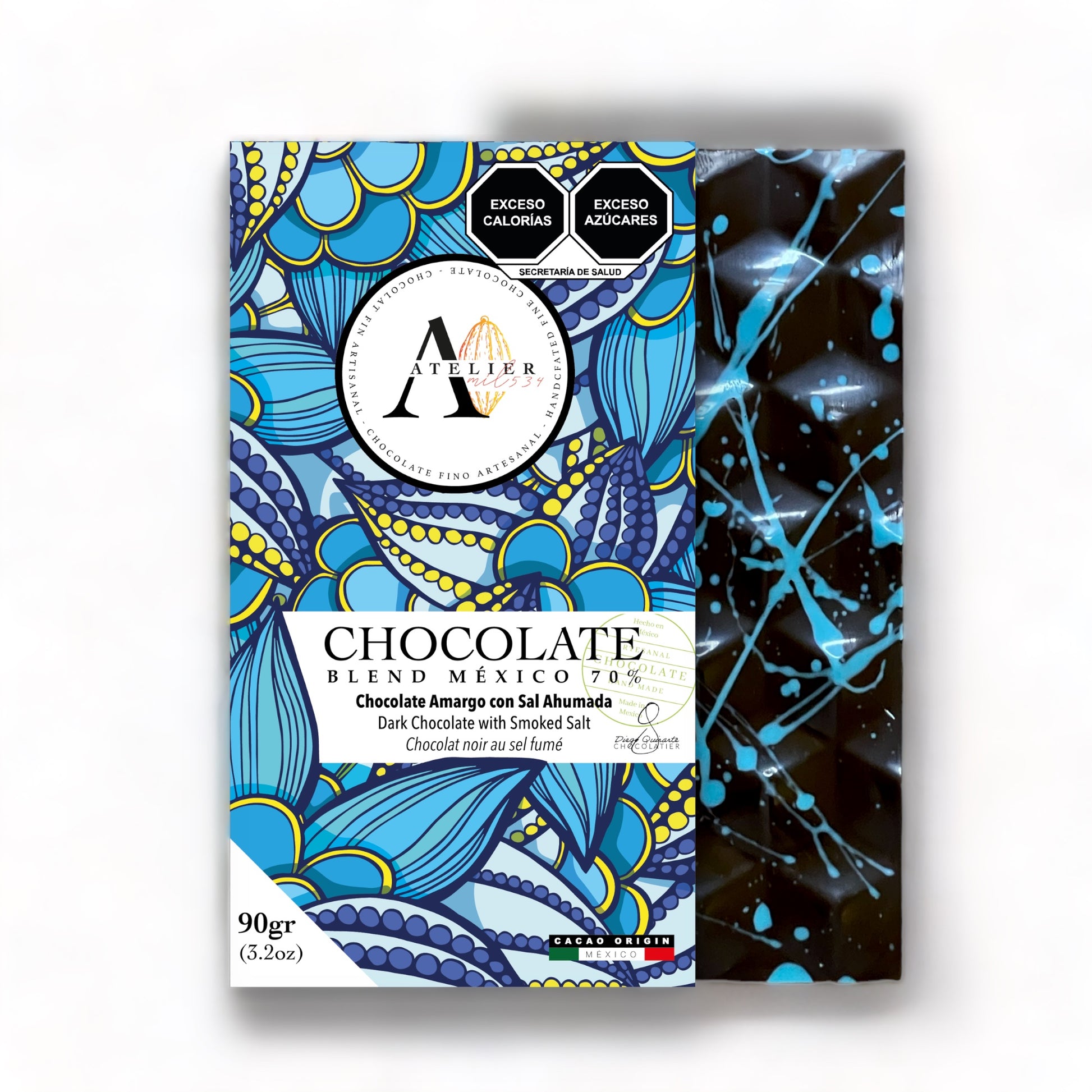 Tableta de Chocolate 70% BLEND MX CON SAL AHUMADA, 90g