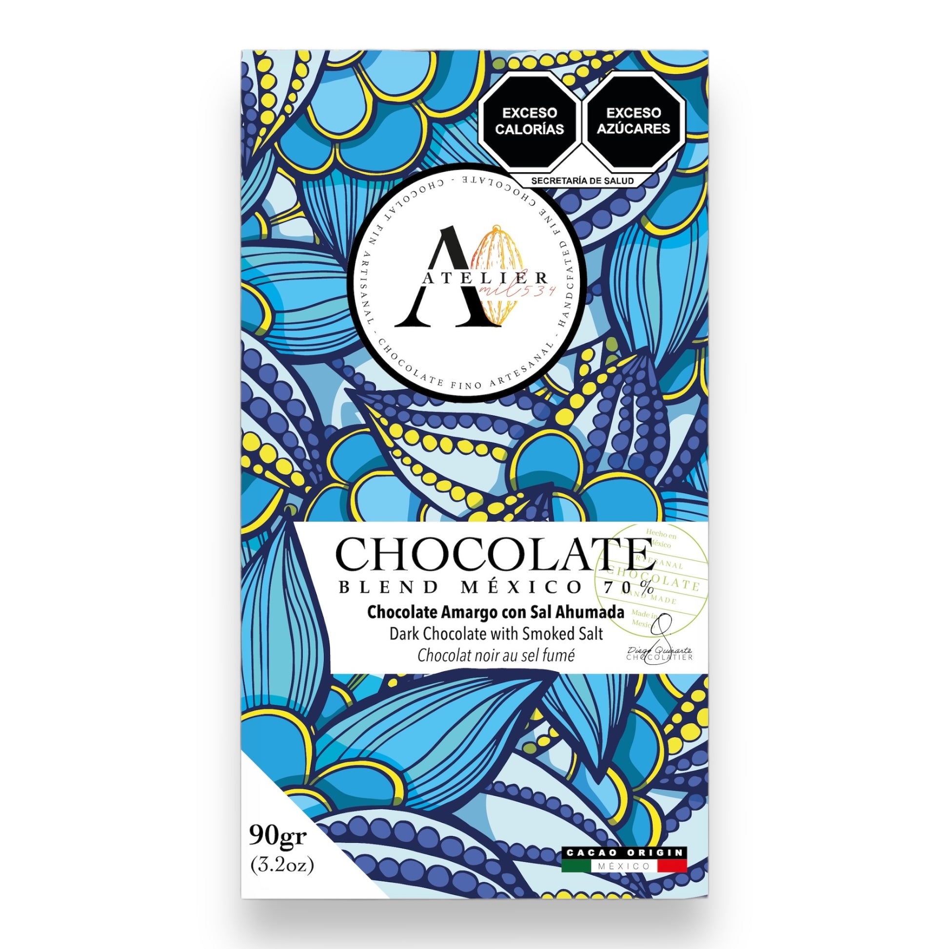 Descubre la armoniosa combinación de nuestra Tableta de Chocolate 70% Blend MX con Sal Ahumada, 90g. Sumérgete en la experiencia única de sabores, donde el cacao mexicano se encuentra con la sutileza de la sal ahumada. Una deliciosa indulgencia para los amantes del chocolate con un toque distintivo. ¡Disfruta de cada bocado de este placer artesanal!